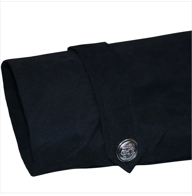 This long Steampunk coat has ornamental buttons and straps at the end of the sleeves and in the back for a 100% Victorian look.