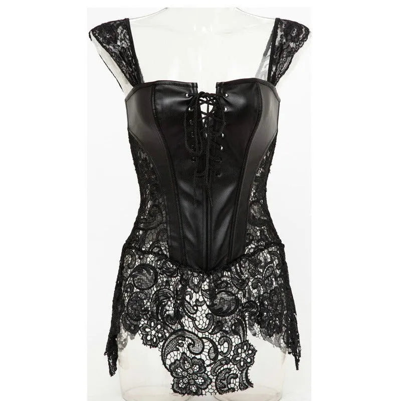 - Material composition: synthetic leather, spandex, lace
