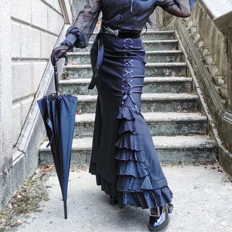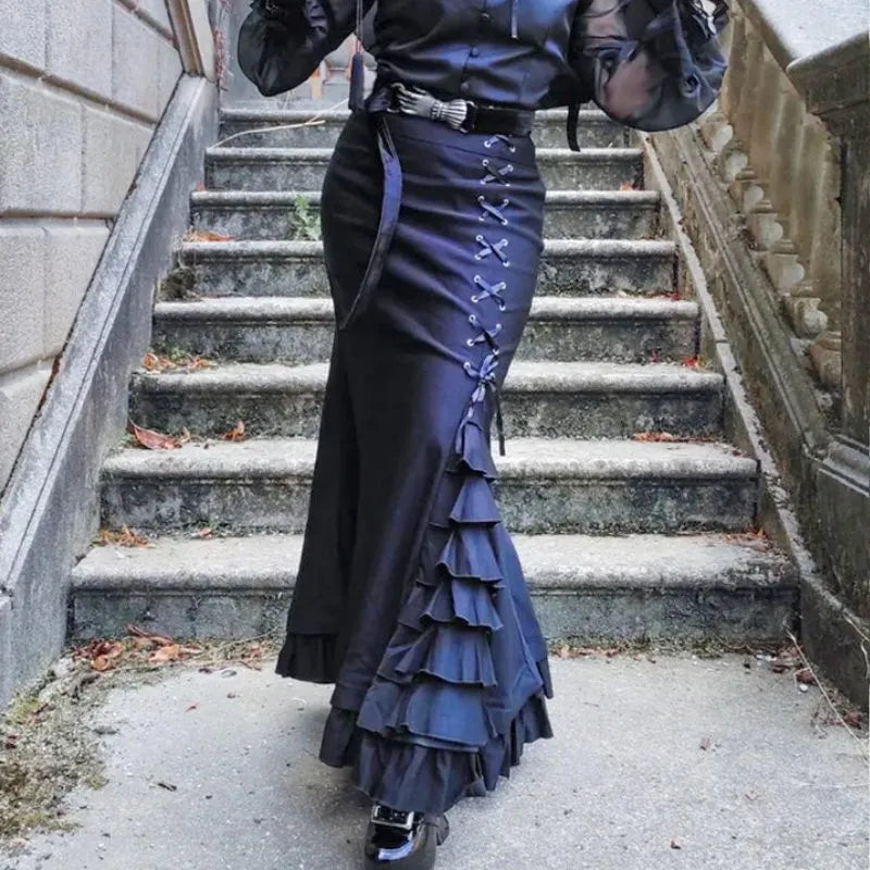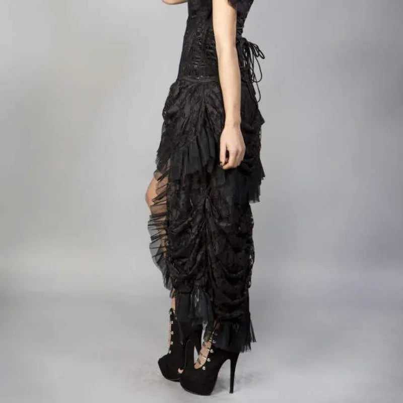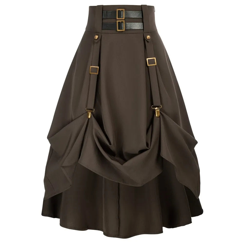 If our steampunk dresses don't appeal to you, you might be interested in beautiful steampunk skirts. Whether you're looking for a shortcut or a long cut, we have what you need. Steampunk skirts are a must-have because you can match them with a blouse, nice suede boots, and a brown or black leather belt. With stripes, lace, ruffles, veils, etc... you will inevitably end up falling for one of them.