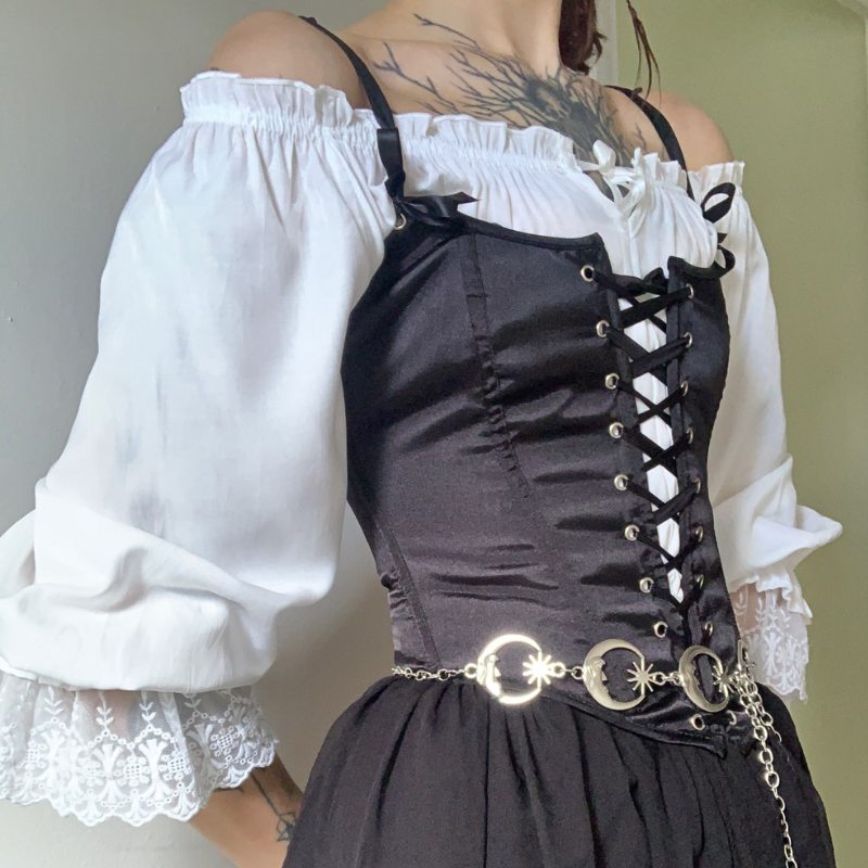 Our Steampunk Gothic Clothing collection includes a variety of tops that are perfect for any occasion. From romantic blouses with lace detailing to sleek leather vests, we have it all. Our tops feature a range of unique elements such as gears, buckles, and straps that add an edgy steampunk touch to any outfit.