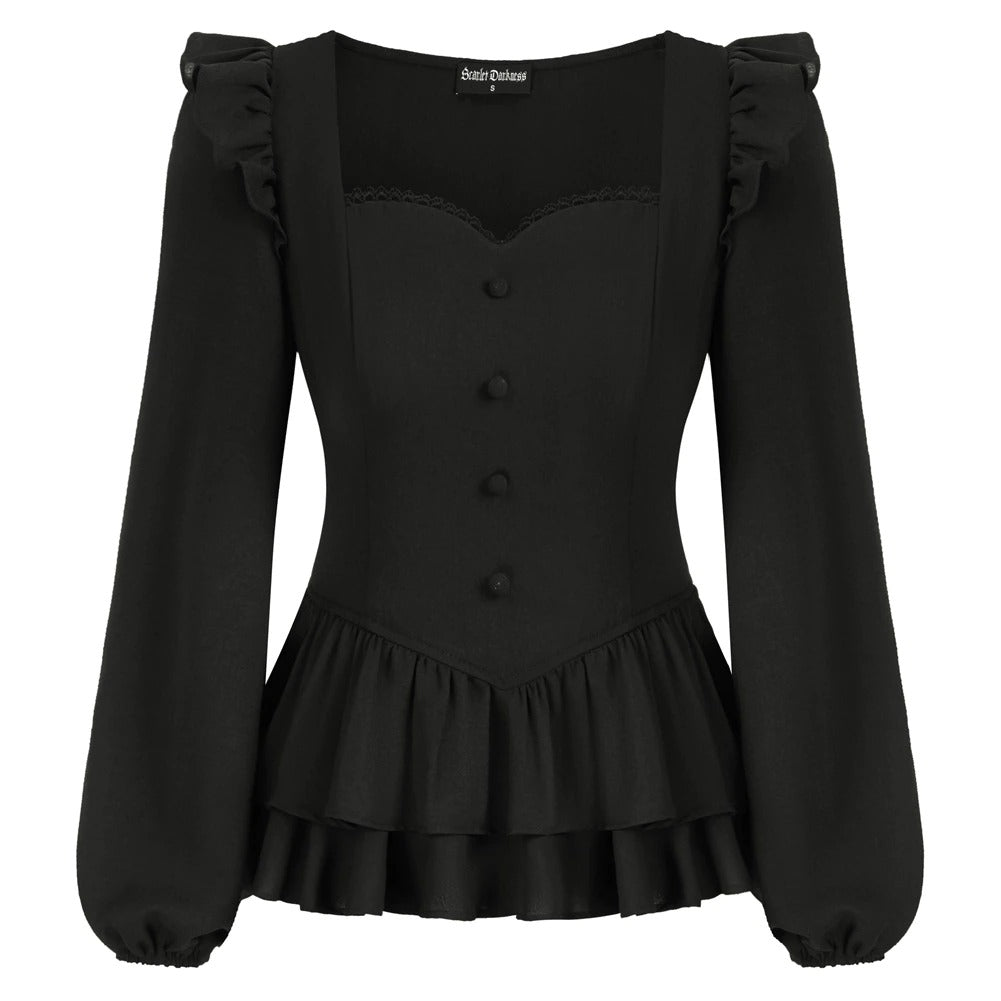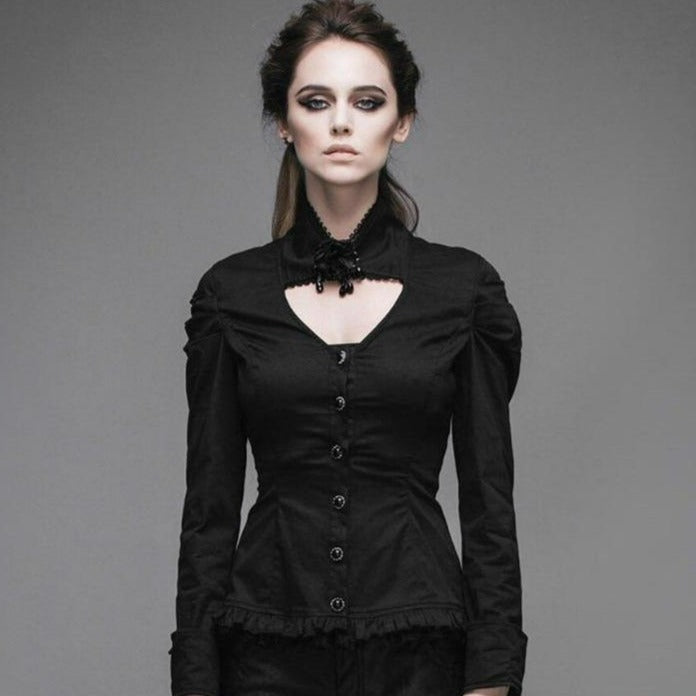 Our Steampunk Gothic Clothing collection includes a variety of tops that are perfect for any occasion. From romantic blouses with lace detailing to sleek leather vests, we have it all. Our tops feature a range of unique elements such as gears, buckles, and straps that add an edgy steampunk touch to any outfit.