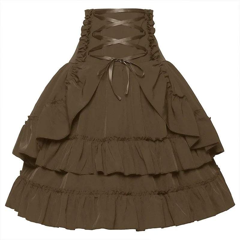 Our site is the perfect place to discover new vintage inspirations for an exciting take on steampunk skirts. We offer steampunk skirts in red, brown, white, black, and more colors. All of our bottoms pair well with your favorite corset, so you can have fun mixing up your fashion choices for any occasion. Enhance your collection with midi skirts and miniskirts that you can wear in different ways at different events. Explore different looks and have fun with your style. As a result, your Victorian badass look will leave heads turning! A corset top will curve your figure the best and show off your best assets to complement your elegant skirt.