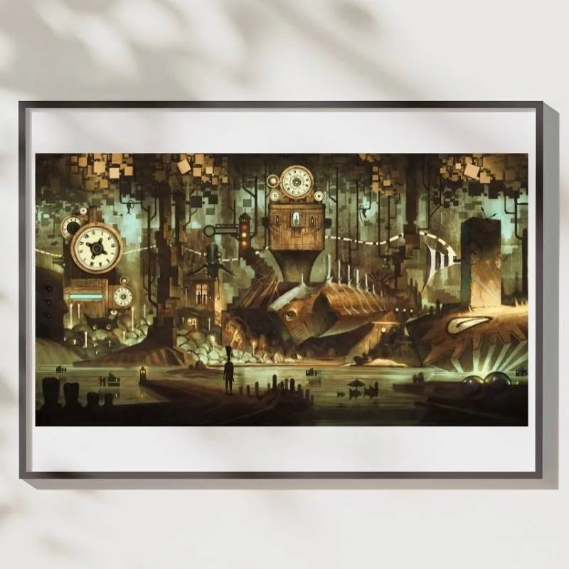 Steampunk underground city wall art