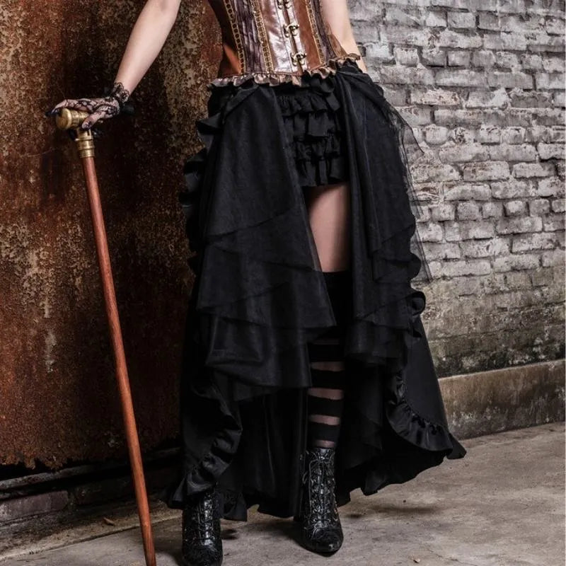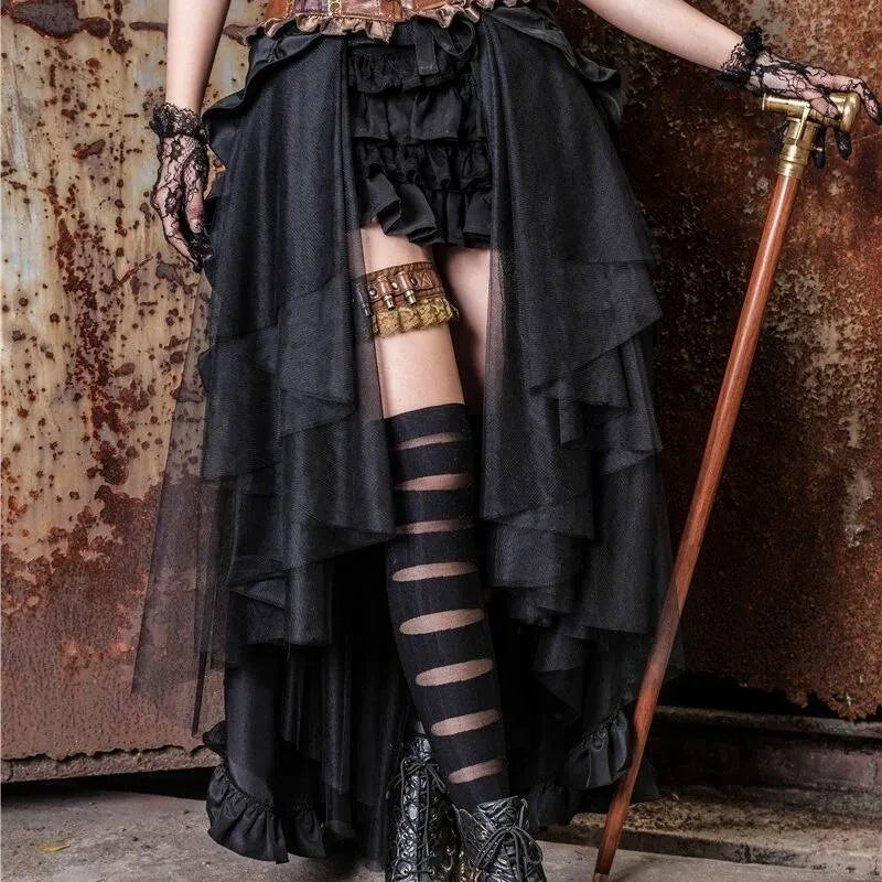 Pants and leggings in the Steampunk Western style are typically made from durable materials such as leather or denim. They may feature intricate stitching, buckles, or other metal accents. Steampunk Western pants and leggings are perfect for completing a rugged and adventurous look.